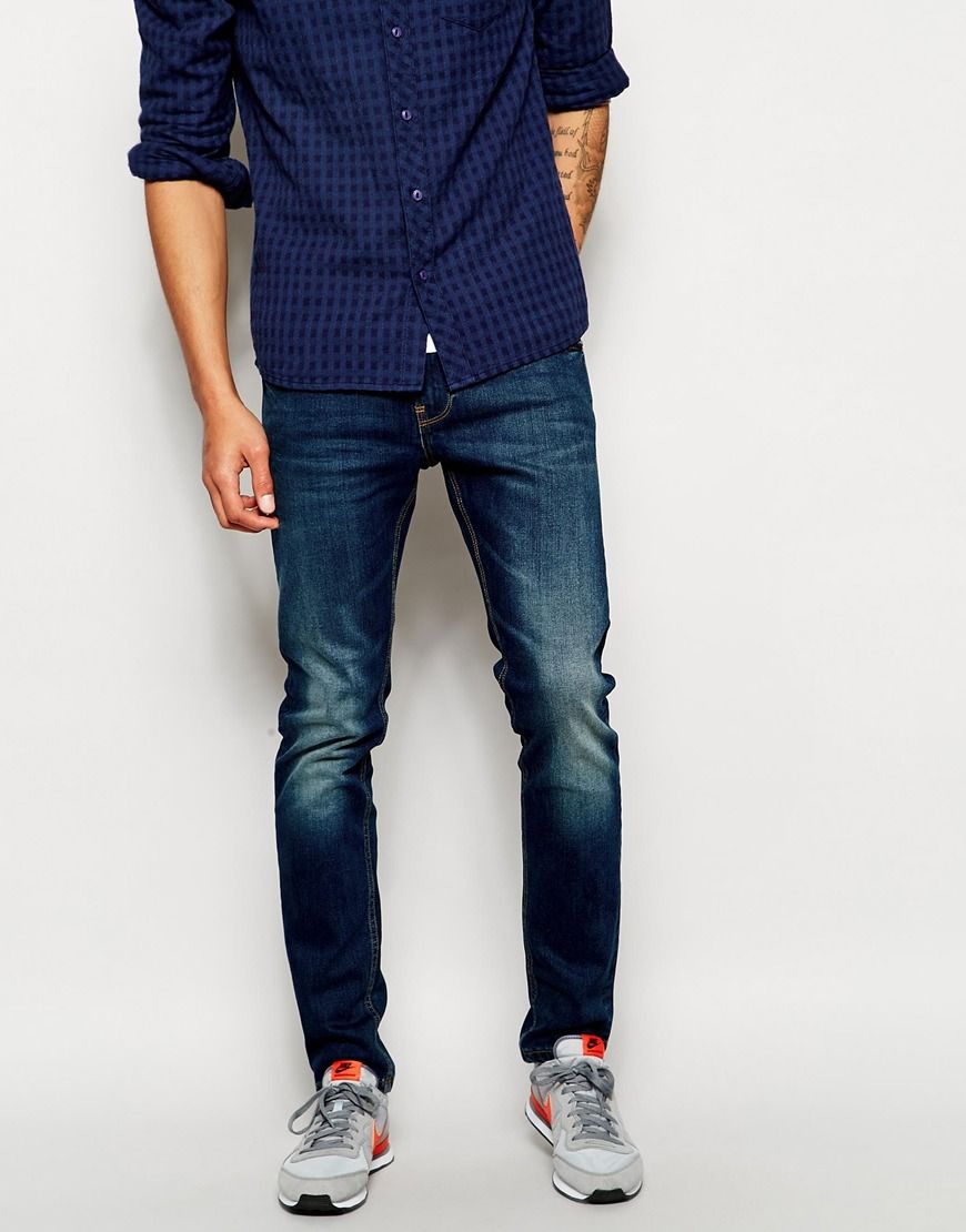 • Blend - Cirrus - Jean skinny effet vieilli avec délavage moyen - Bleu marine délavé