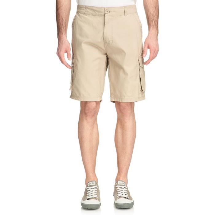 Bermuda, 100 % coton, beige. Zip, 6 poches.