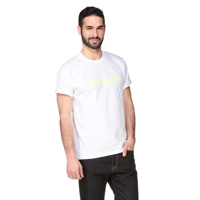 Carhartt - T-Shirt Wip Script Blanc et Jaune Homme
