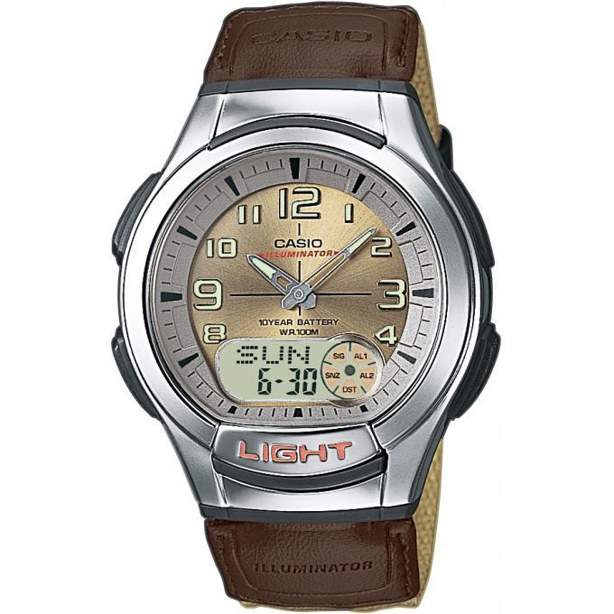 Montre en acier sur un bracelet en tissu de coloris beige. Cadran doré doté d'un affichage analogique. Mouvement quartz. Montre résistant a une pression de 10 Atm.