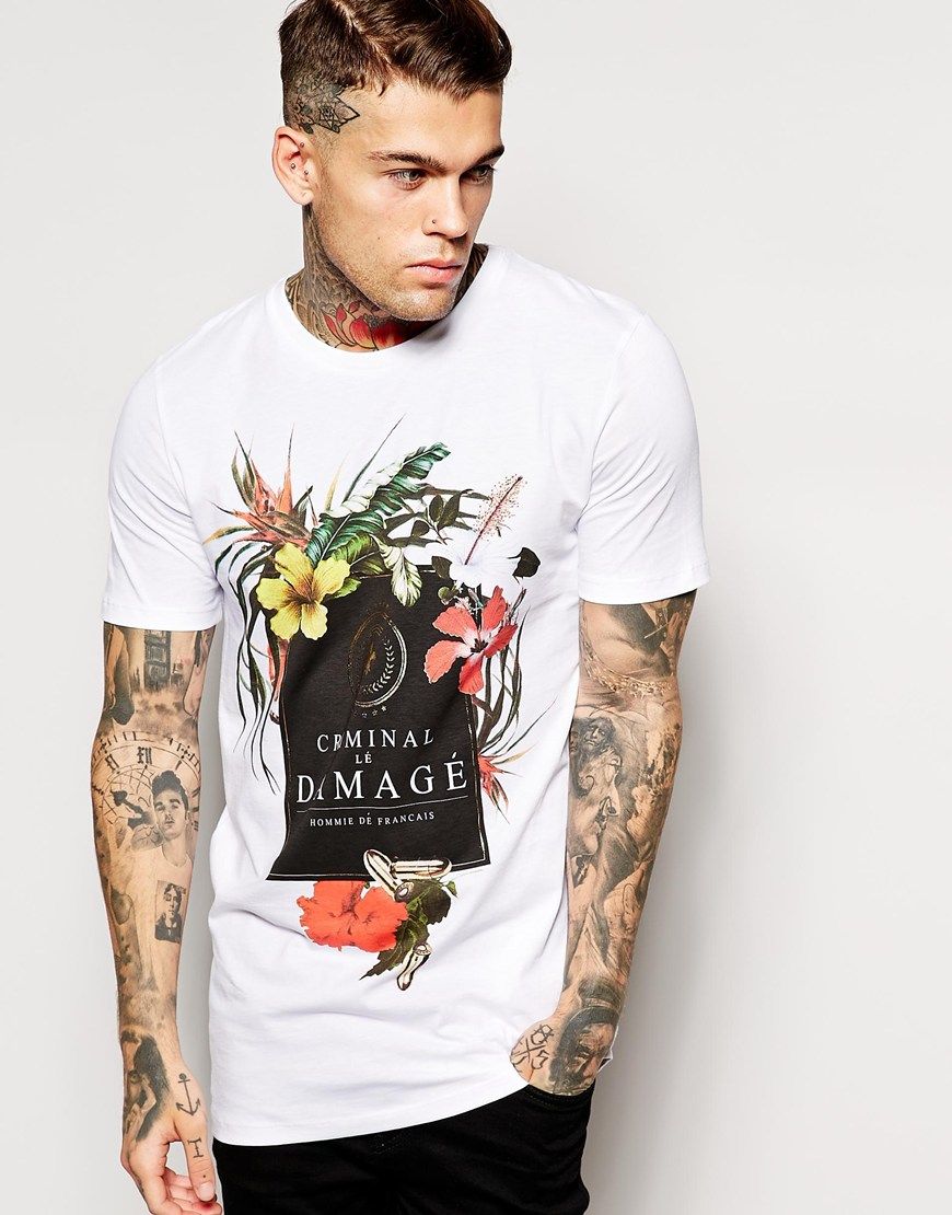 Achetez Criminal Damage - T-shirt imprimé fleuri, t-shirt Criminal Damage pour homme sur Pickture, dans les tendances fleuri, Blanc