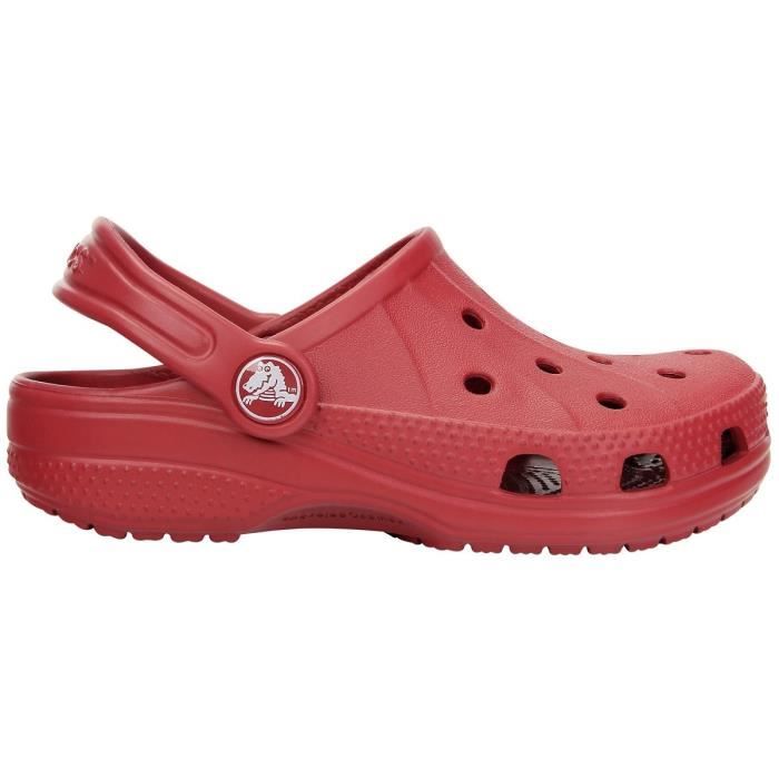 Sabots en synthétique, coloris rouge. Fermeture par bride au talon.