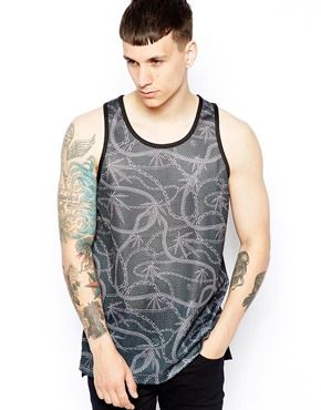 • Crooks & Castles - Débardeur style basketball à imprimé chaînes et feuilles - Noir