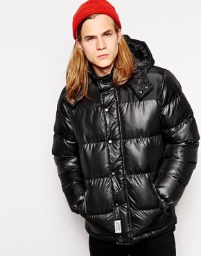 D-Struct - Veste rembourrée ultra brillante à capuche - Noir