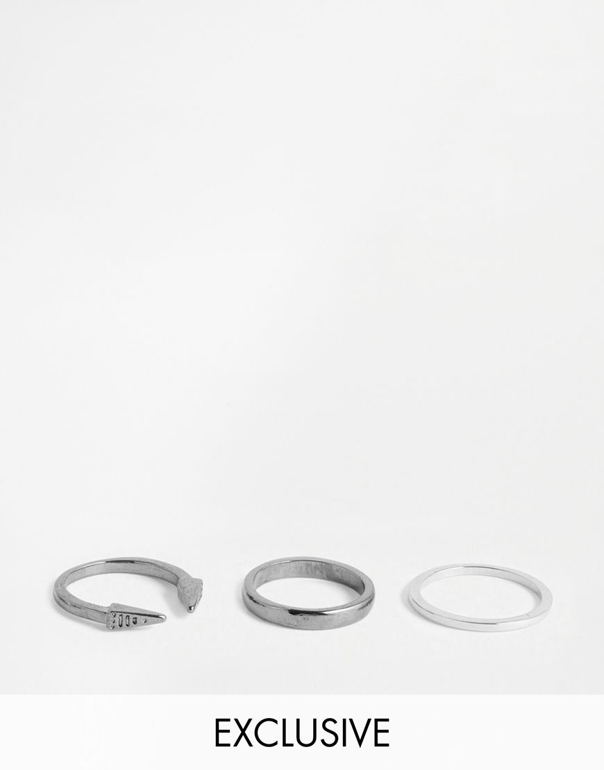 • Designsix - Bagues superposées exclusivité ASOS - Argenté