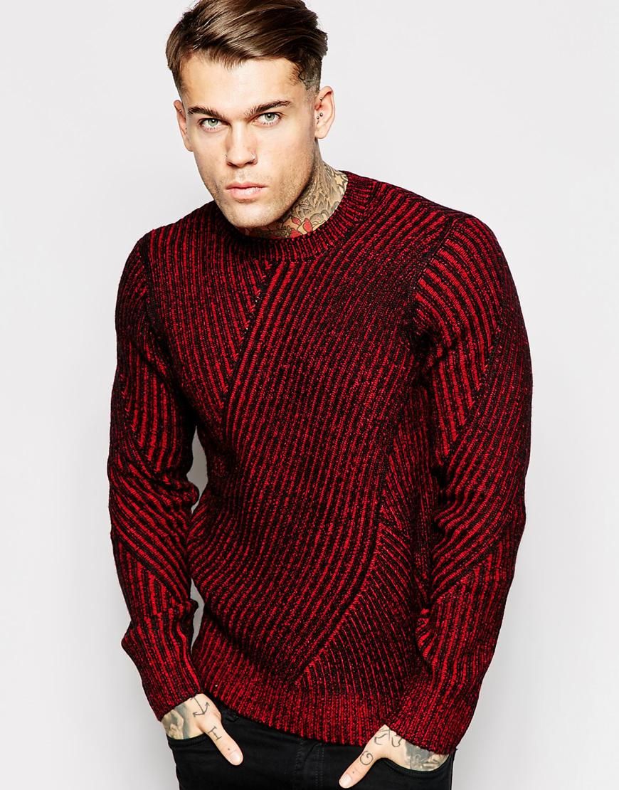 Diesel - - K-Gyromitra - Pull ras du cou en maille à côtes multi-directionnelles - Rouge
