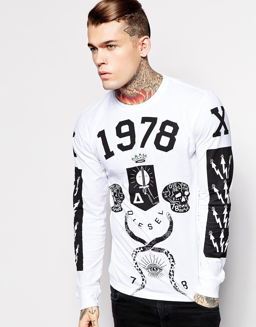 Diesel - - T-Illuminati 1978 - Top manches longues imprimé skater - Blanc