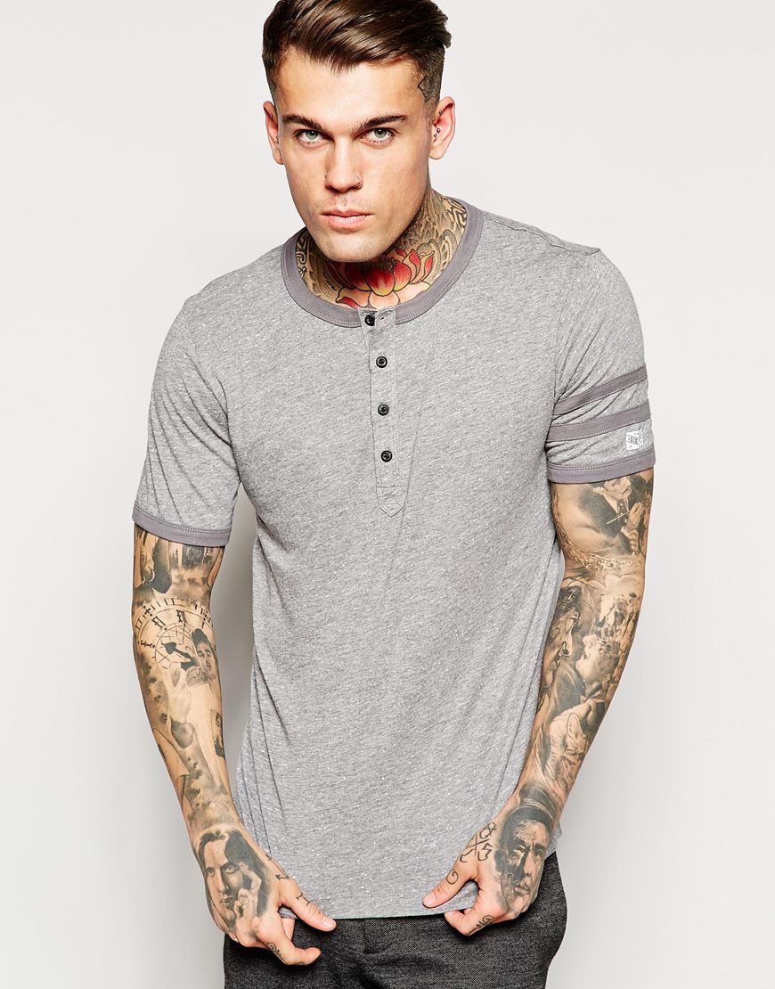 • Diesel - T-Izu - T-shirt chiné à col grand-père contrasté - Gris