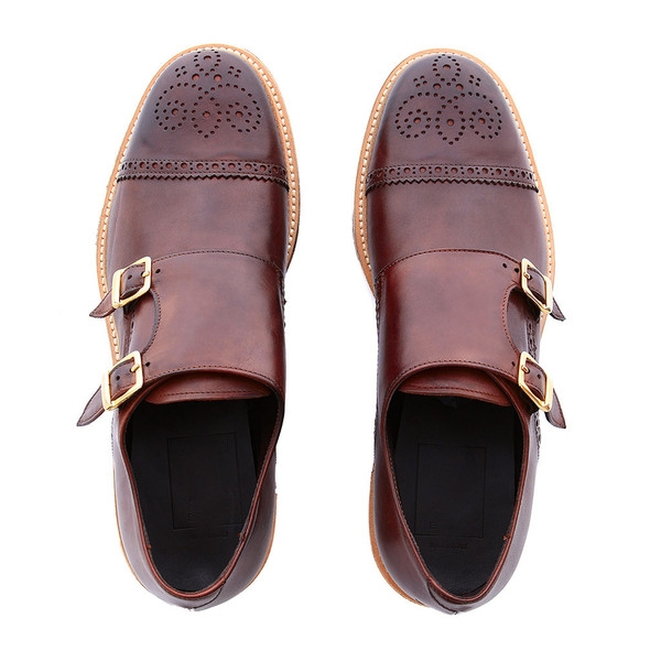 • Double monk strap with wedge sole