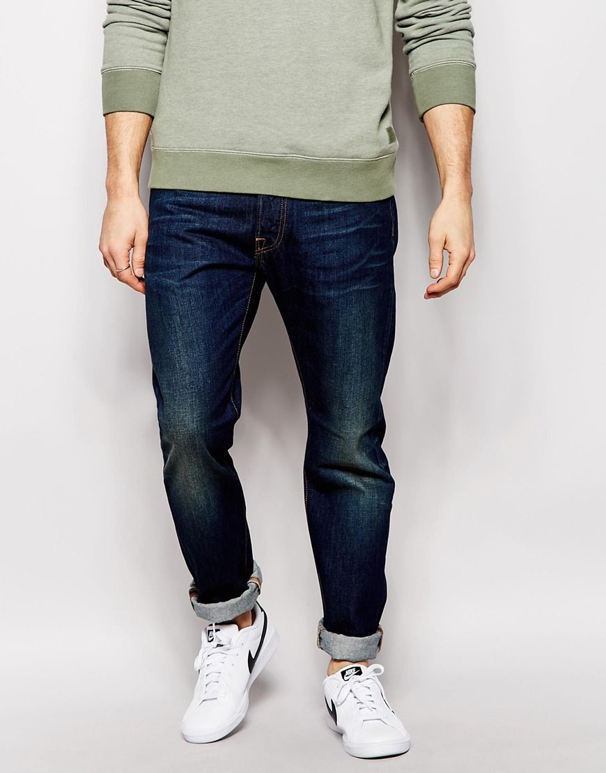 • Edwin - ED75 - Jean fuselĂ© avec dĂ©lavage Ă  effet vieilli foncĂ© - FoncĂ© effet usĂ©