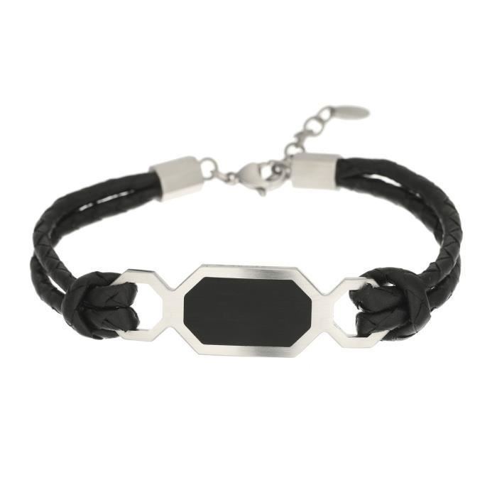 Bracelet en cuir et acier. Fermoir mousqueton.
