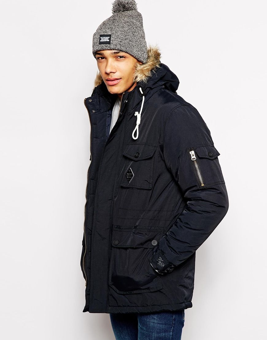 Achetez Fly 53 - Parka avec capuche bordée de fausse, parka Fly 53 pour homme sur Pickture, dans les tendances Parka, fourrure, Noir