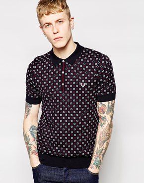 Achetez Fred Perry X Drakes - Polo en maille avec motif, polo Fred Perry pour homme sur Pickture, dans les tendances Polo, maille, motif, Bleu, marine