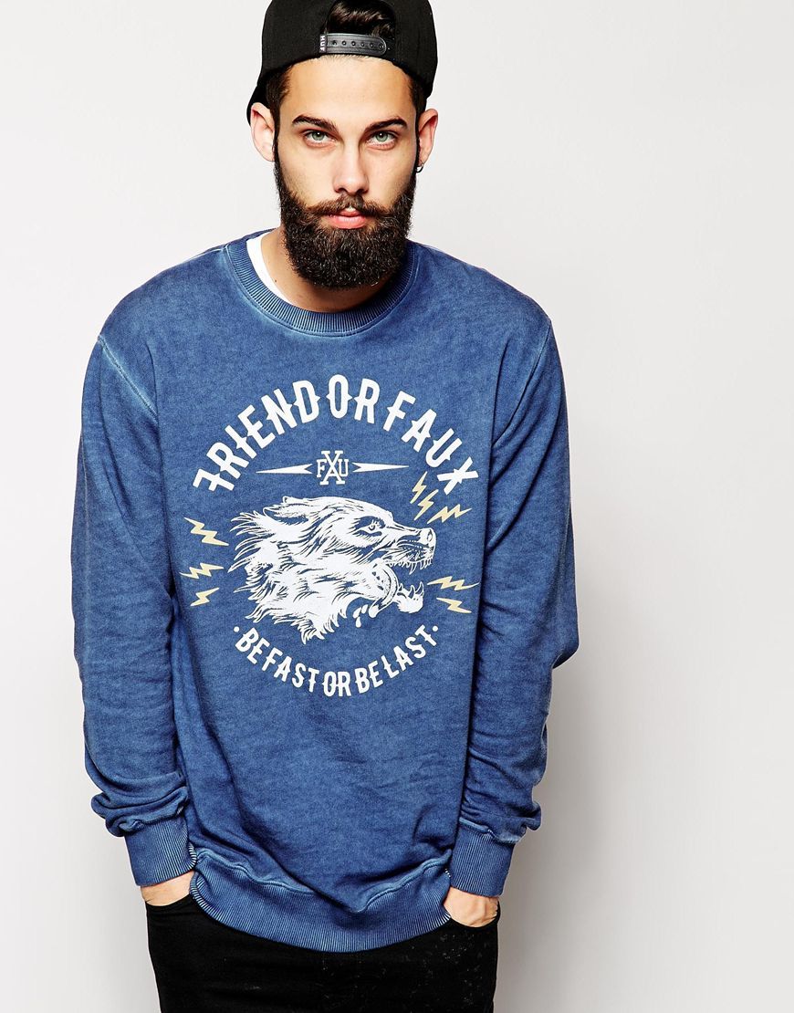 Friend Or Faux - Sweat imprimé loup - Bleu