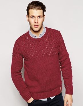 Tommy hilfiger - Hilfiger Denim - Pull à empiècement texturé - Rouge