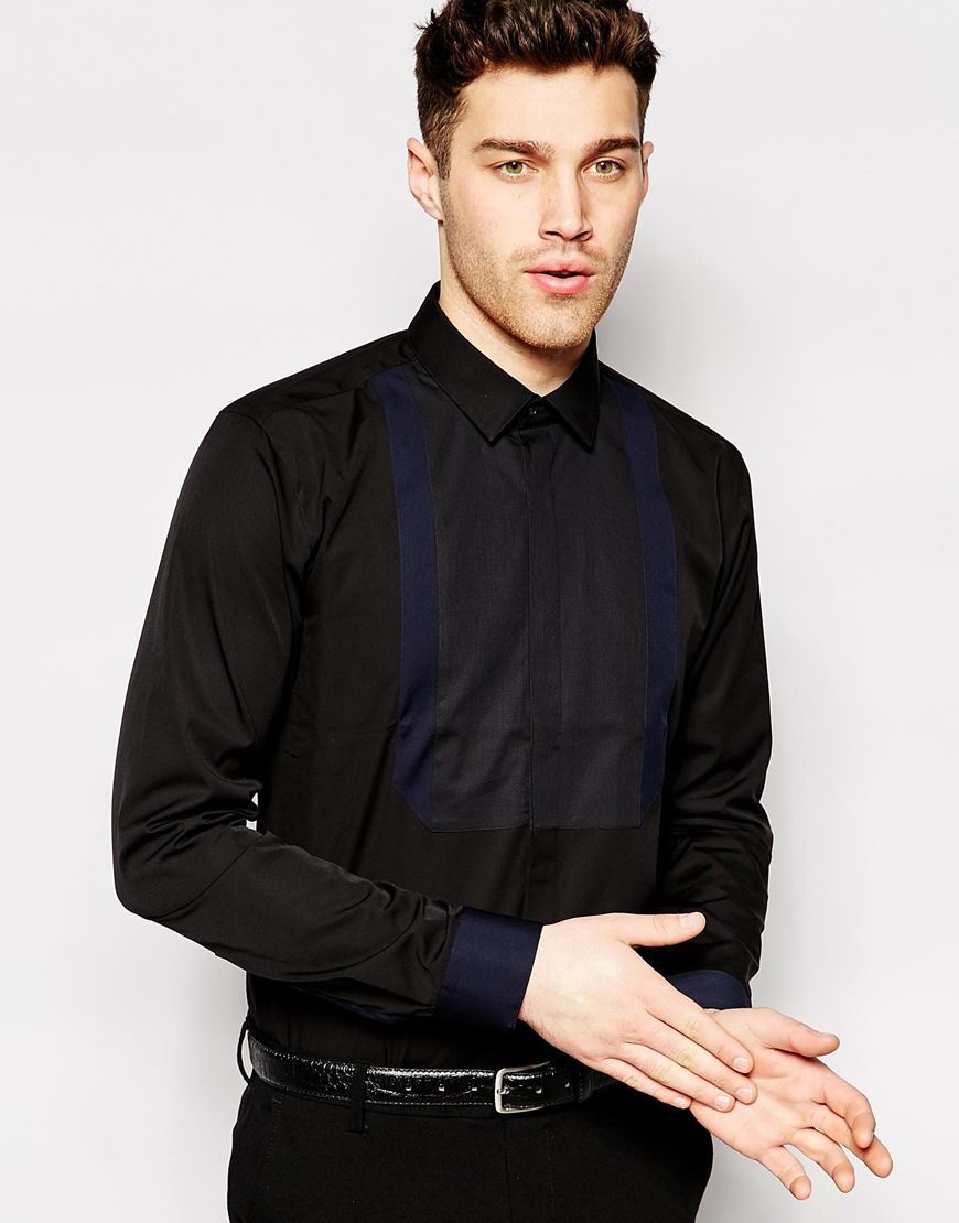 Hugo boss - HUGO - Chemise slim à plastron sur le devant - Noir