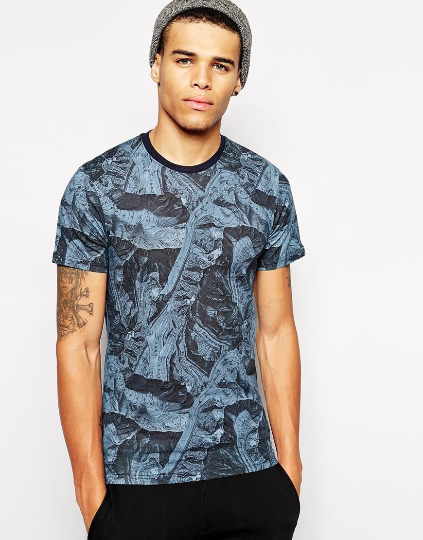 Achetez Iuter - T-shirt à imprimé ancienne carte de, t-shirt Iuter pour homme sur Pickture, dans les tendances carte, montagne, Bleu