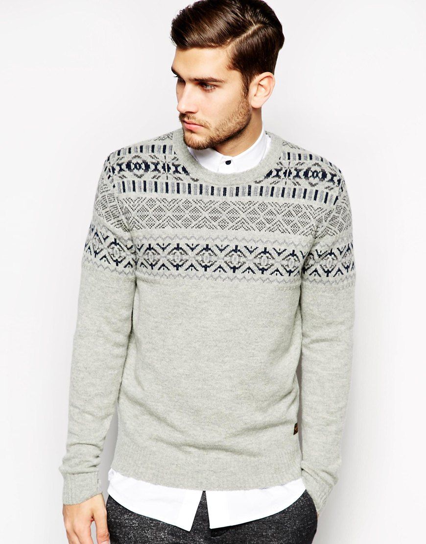• Jack & Jones - Pull en tricot avec empiècement en jacquard - Mélange de gris clair
