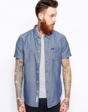 Achetez Lee - Chemise manches courtes en chambray effet, chemise Lee pour homme sur Pickture, dans les tendances Chemise, Bleu