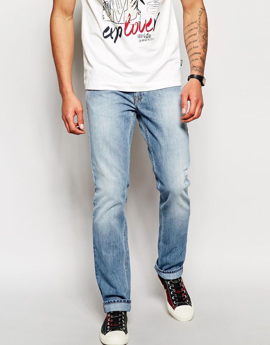 Love Moschino - Jean droit avec poche motif camouflage - Bleu
