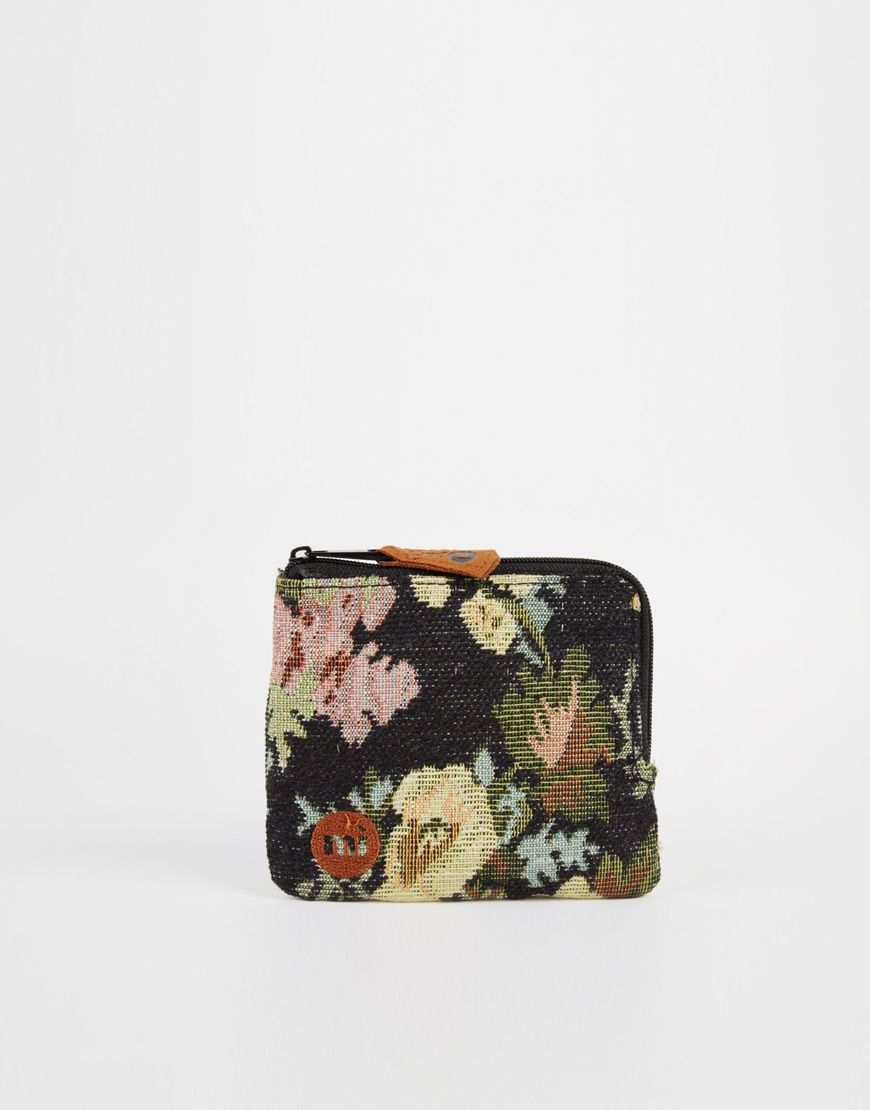 Mi-Pac - Portefeuille zippé à motif roses style tapisserie - Noir