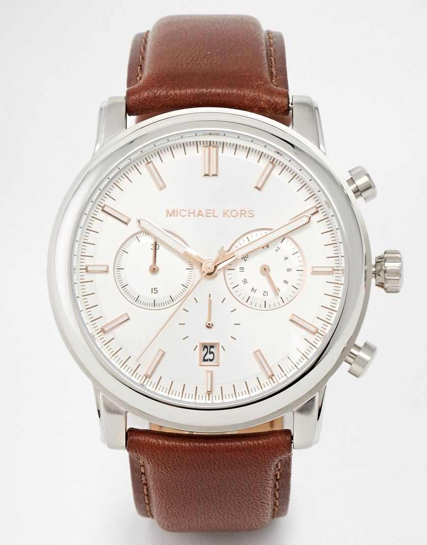 • Michael Kors - Landaulet MK8372 - Montre chronographe Ă  bracelet en cuir marron - Marron