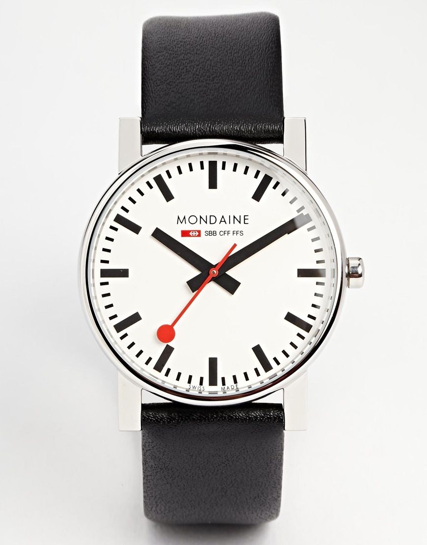 • Mondaine - Evo - Grosse montre Ă  quartz Ă  bracelet en cuir - Noir
