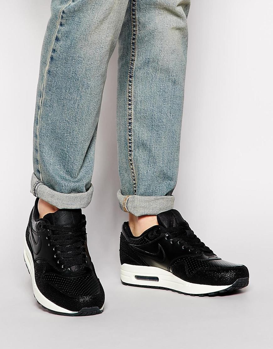 • Nike - Air Max 1 - Baskets en cuir de qualitĂ© supĂ©rieure - Noir