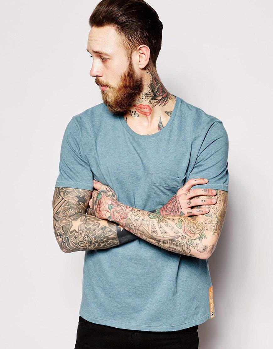 • Nudie - T-shirt à une poche en tissu mélangé - Bleu clair