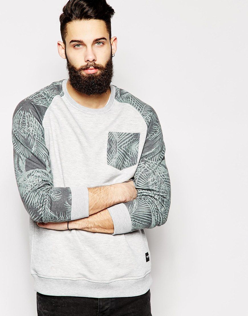 • Only & Sons - Sweat avec manches raglan et poche à imprimé feuilles - Gris