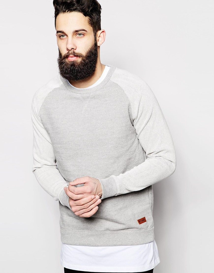 • Only & Sons - Sweat texturé avec manches raglan à motif chevrons - Mélange de gris clair