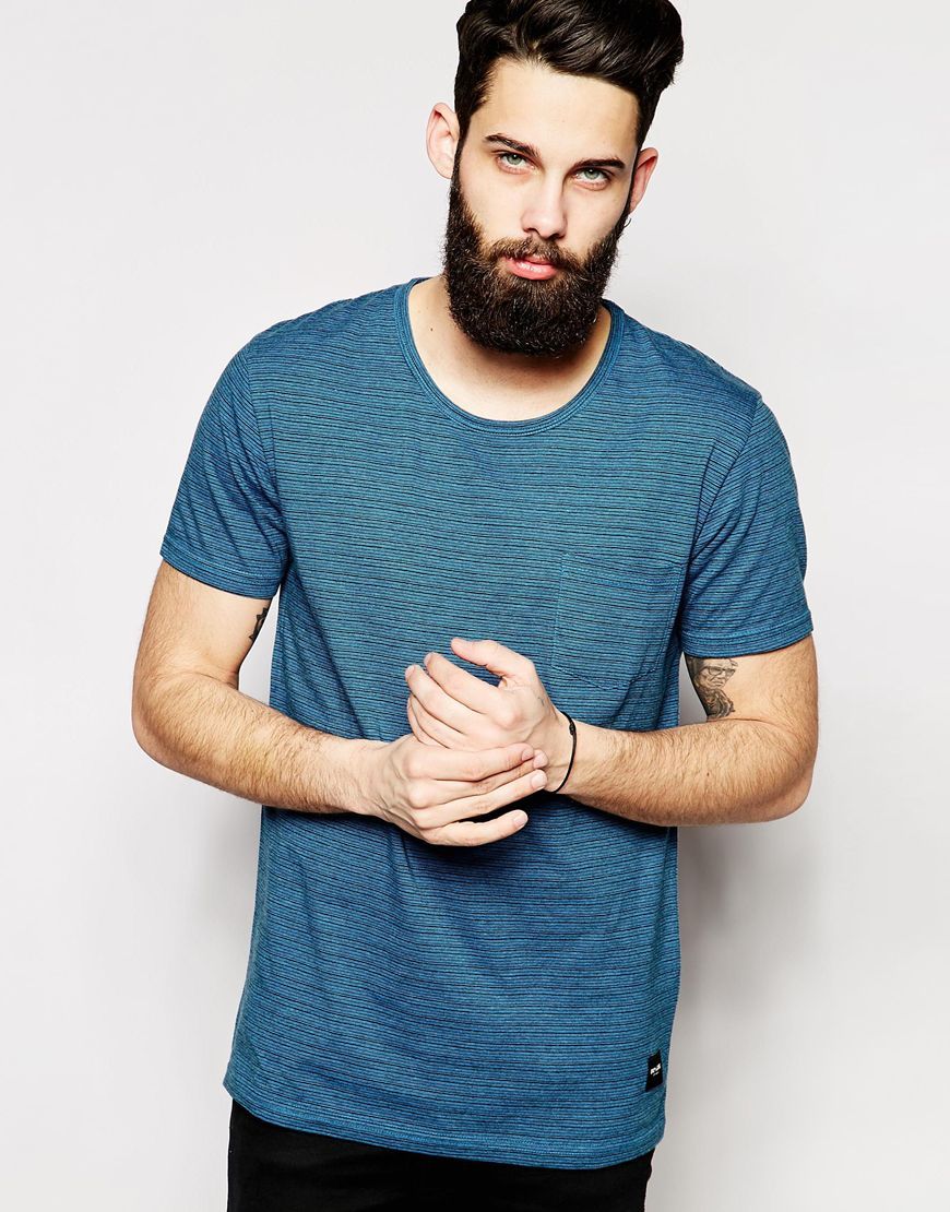 • Only & Sons - T-shirt à encolure dégagée, fines rayures et poche - Bleu éclatant
