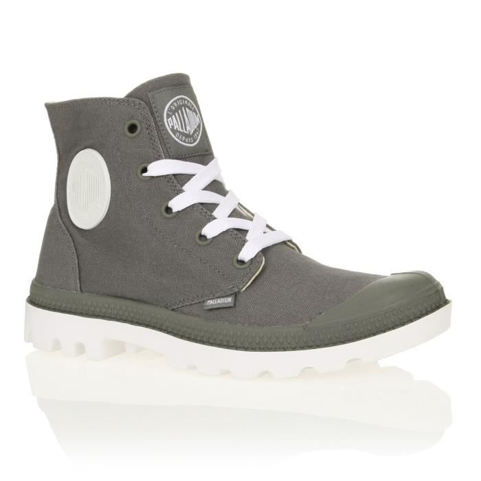 Baskets montantes en toile avec semelle crantée contrastante blanche, coloris gris. Fermeture par lacets. Absolument canonissimes !
