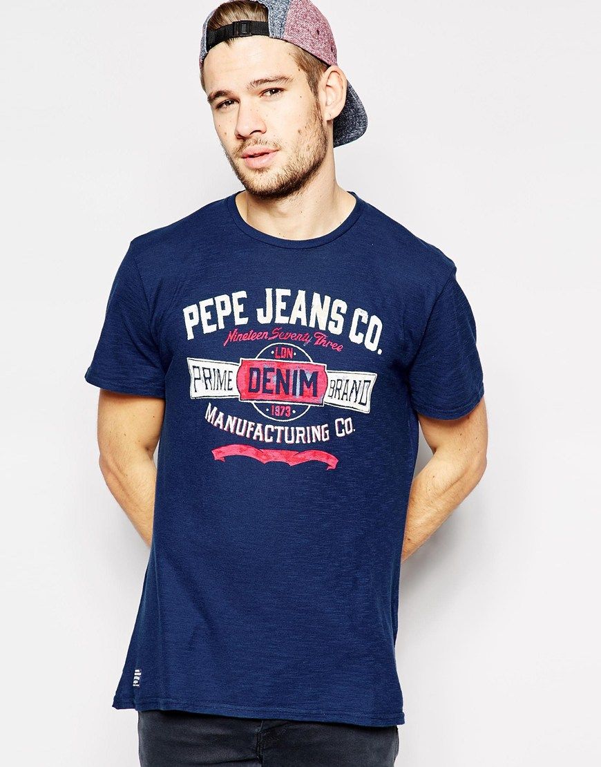 Pepe jeans - Pepe - Sean - T-shirt à imprimé logo flammé avec inscription « Denim » - Bleu foncé
