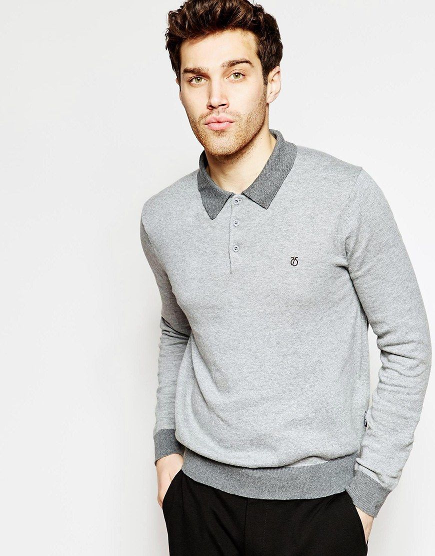 • Peter Werth - Polo manches longues en maille - Argenté chiné