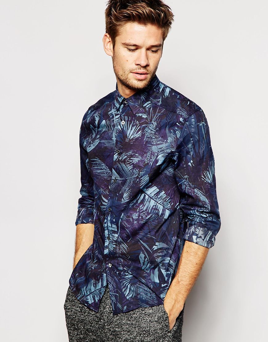 PS Paul Smith - Chemise cintrée imprimé jungle - Bleu marine