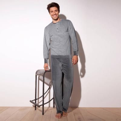 La maille velours de ce pyjama réserve un confort certain. On aime son jeu de tonalités qui lui confère de l'élégance.FICHE SHOPPING Pyjama composé d'un T-shirt et d'un pantalon T-shirt : - En maille velours unie - Bords-côtes contrastés r...