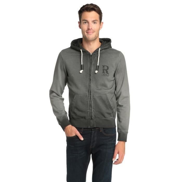 Sweat gris 100% coton, col capuche. Manches longues. Poignets et base en côtes. Capuche avec cordons de serrage.