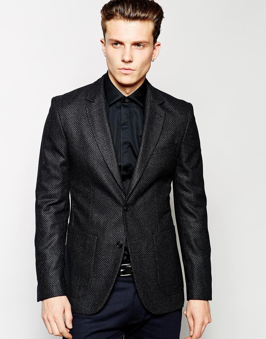 Reiss - - Blazer coupe classique ajustée motif pied-de-poule - Noir