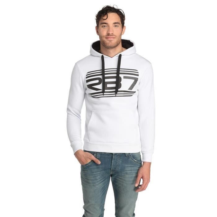 Sweat blanc 65% coton, 35% polyester, col capuche. Manches longues.