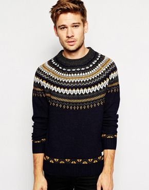 Achetez Selected - Pull avec empiècement en jacquard, Selected pour homme sur Pickture, dans les tendances Pull, jacquard, Blazer, bleu, marine