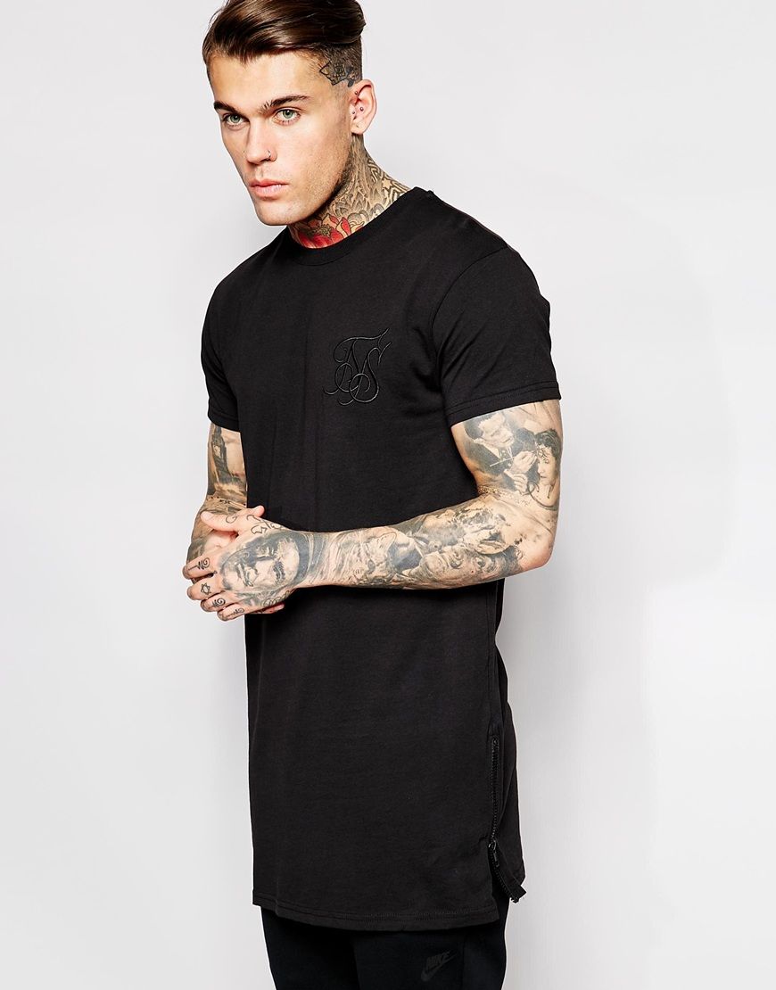 SikSilk - T-shirt long zippé sur les côtés - Noir