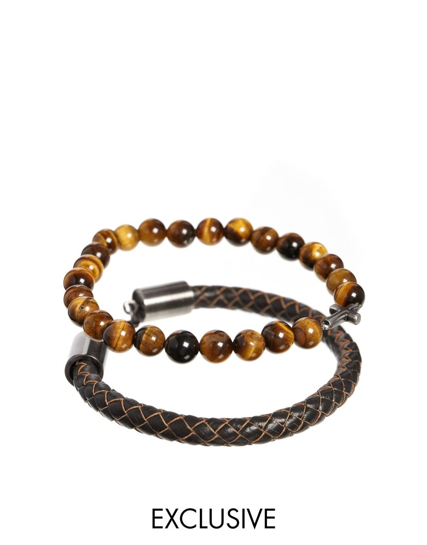 • Simon Carter - Lot de bracelets en cuir et pierres semi-précieuses exclusivité ASOS - Marron