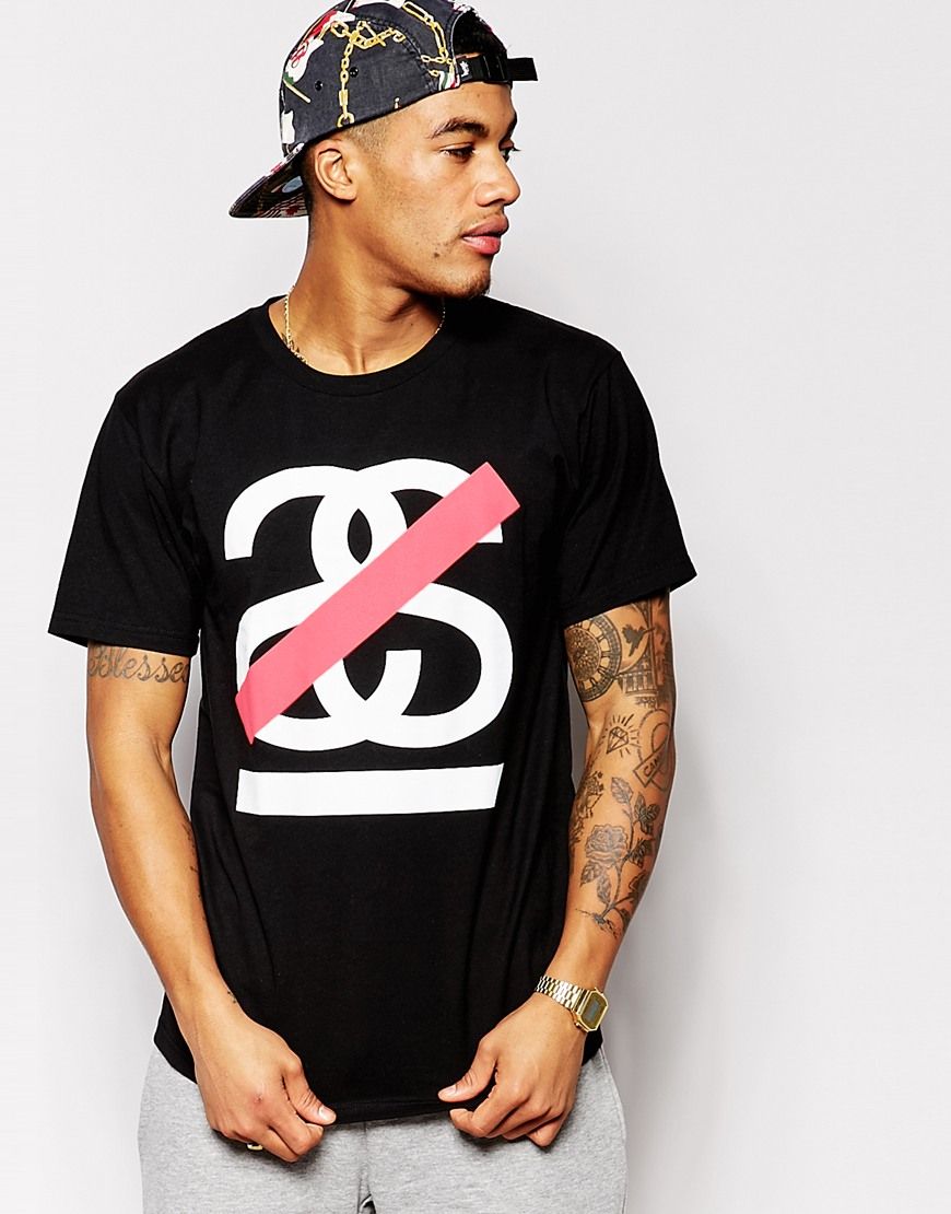 Stussy - - T-shirt à imprimé logo et manches longues - Noir