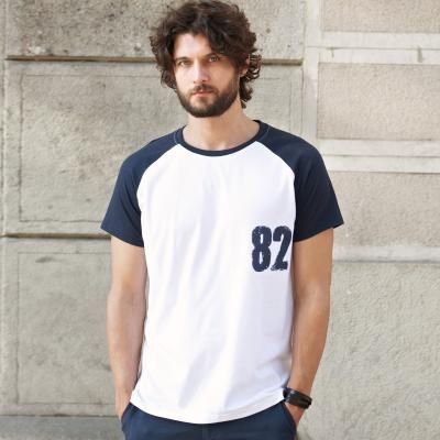 Tee shirt ras-de-cou à manches courtes contrastées coton
