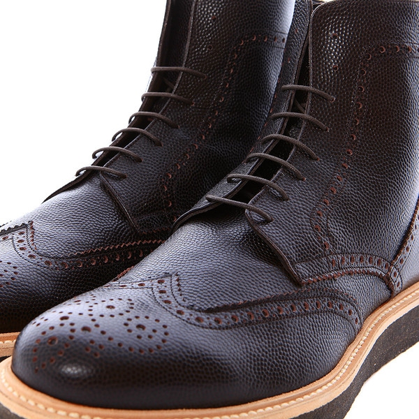 • Textured leather brogue boots with wedge sole