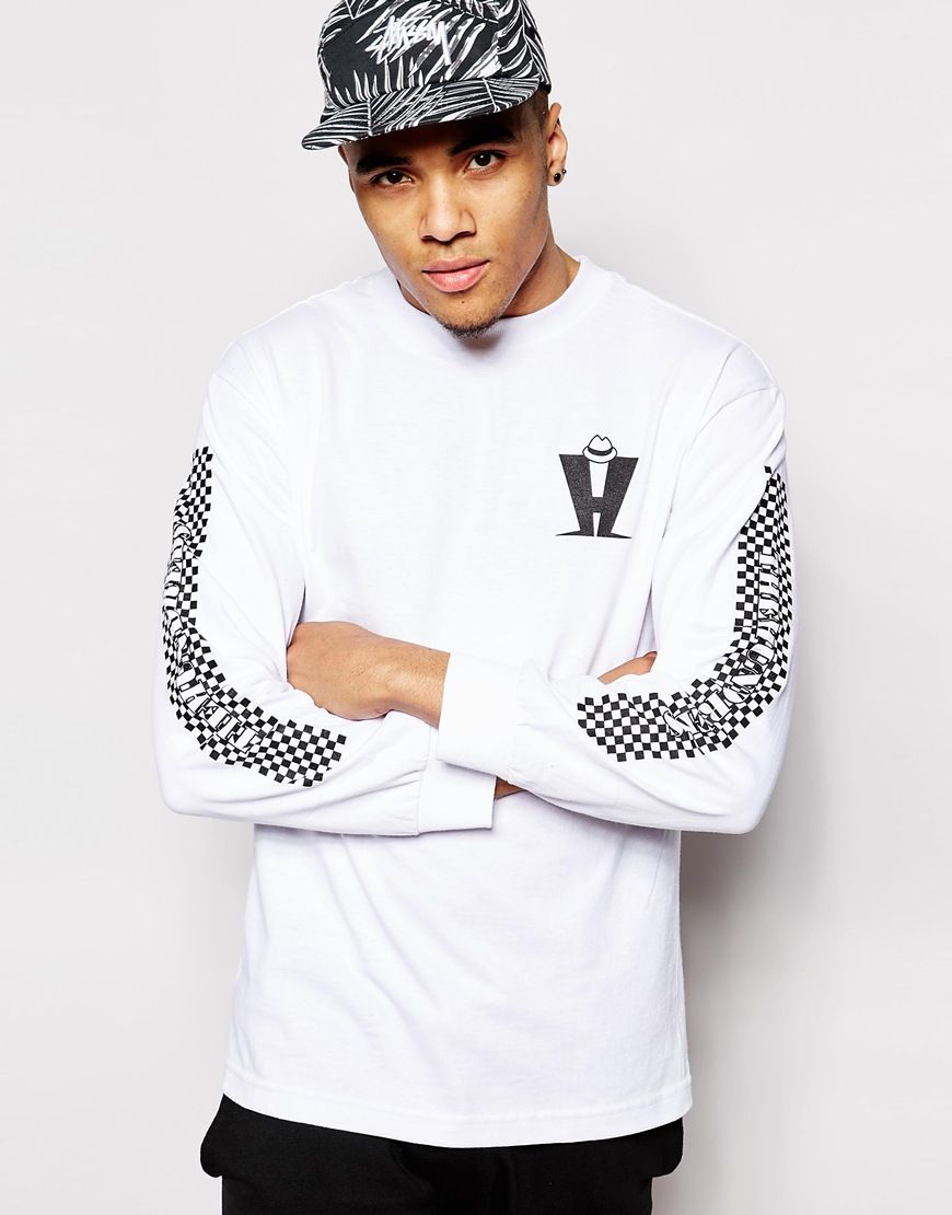 • The Hundreds - T-shirt avec manches longues à imprimé damier - Blanc