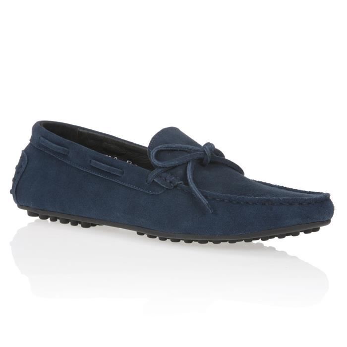 Mocassins en nubuck avec noeud fantaisie et laçage fantaisie, coloris marine.