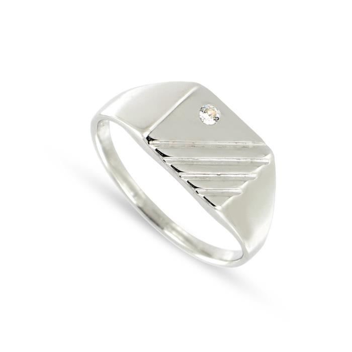 Un des grands incontournables de la bijouterie homme, la chevaliere. Ce modele se décline en Argent 925/000, strié et s'orne d'un oxyde de zirconium en détail. Un cadeau intemporel a offrir pour la fete des peres ou a son amoureux. Bijou livré en écrin avec certificat d'authenticité et de garantie. Poids métal : 5,8 gr. Référence de base T.54.