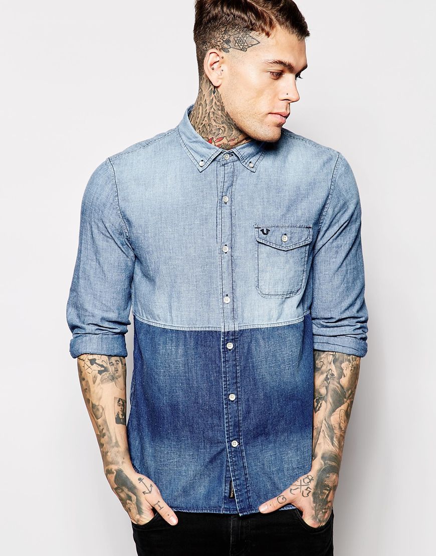 • True Religion - Chemise color block en jean effet coupé-cousu - Multicolore rivière